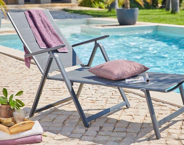 Baštenska stolica sa rukohvatom, metal/vešt. mat. boja: siva/crna, višestruko podesiv naslon, sa jastukom za sedenje i za leđa, nosivost do 120 kg.