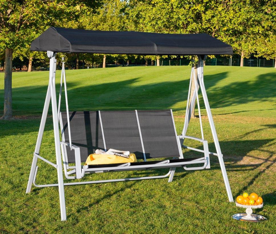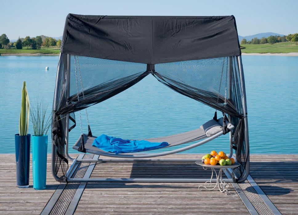 1: Ležaljka ljuljaška Lucky Swing, boja: crna/srebrna, ležaljka od tekstilen tkanine sa mrežom protiv komaraca, čelična konstrukcija, dim. 234x203x138 cm, nosivost do 120 kg (22590023/01)