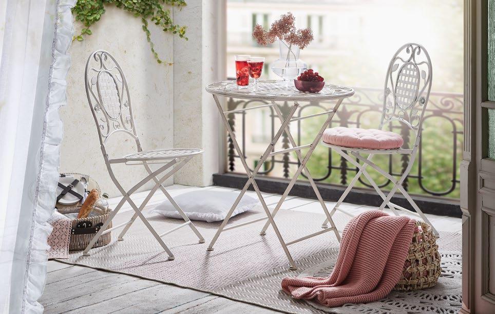 Baštenski set Rose Romantik, sklopivo, kovano gvožđe, bela boja, sastoji se od stola dim. 70x75 cm, nosivosti do 40 kg i dve stolice 40x94 cm, nosivosti do 110 kg (05380001/09)