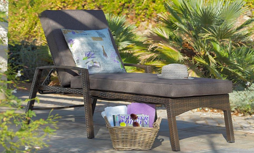 1 : Baštenska ležaljka Santorini , aluminijska konstrukcija zaštićena praškastim premazom i PE pletivom. Podesiv naslon za leđa, dim. 190x106x75 cm, nosivosti do 120 kg, jastuk za sedenje i naslon uključen u cenu. Dostupna u dve boje: braon/taupe i siva/svetlosiva. Ukrasni jastučić uz doplatu (24490020/04)
