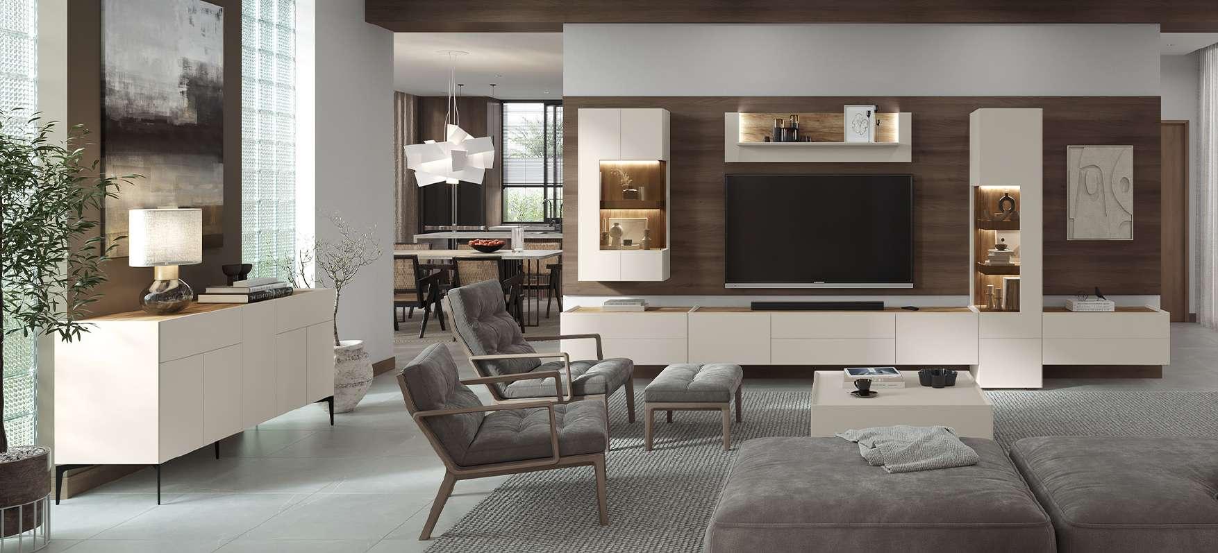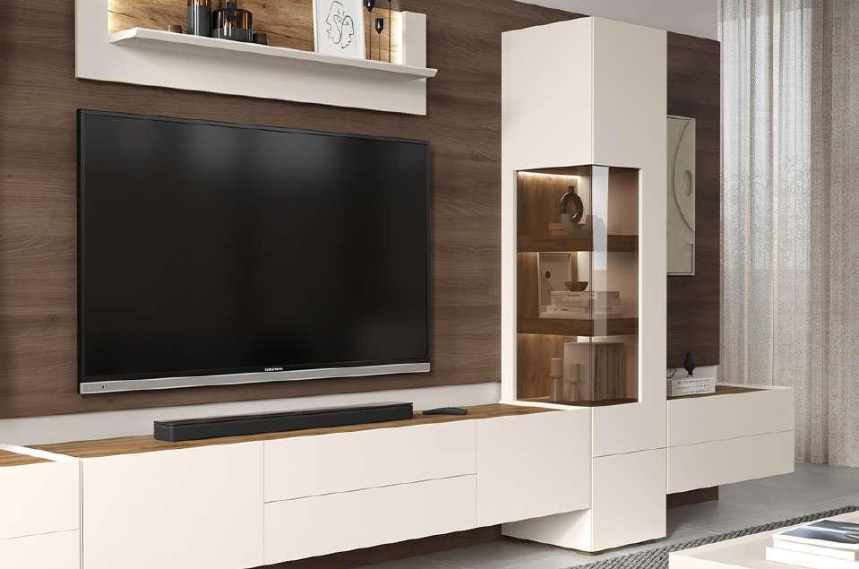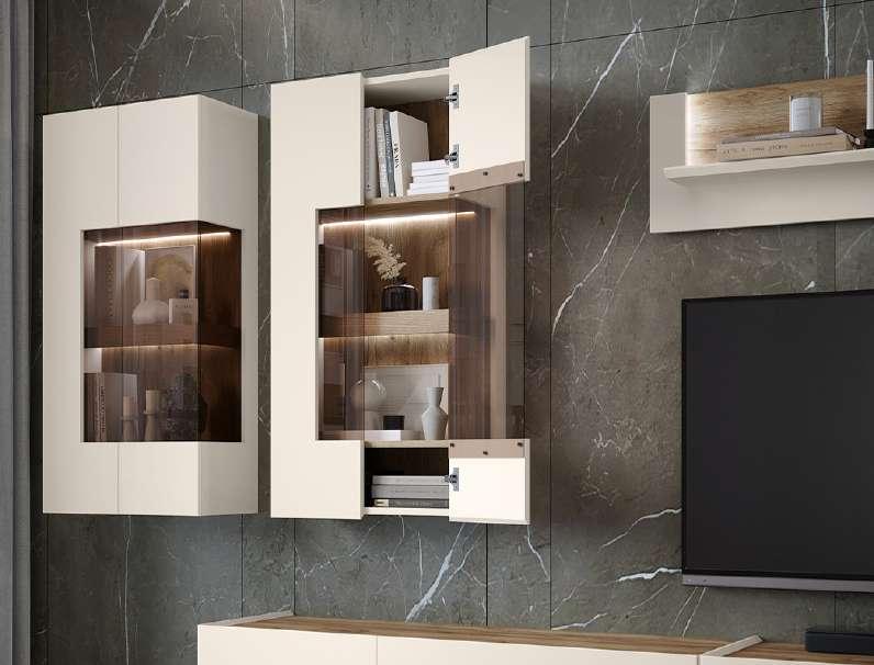 Otkrijte Sky 45 - revolucionarnu dnevnu sobu koja spaja eleganciju i funkcionalnost! Sofisticiranog dizajna, sa bočnim stranama, krilima i frontovima od medijapana, obloženim UV lakom u boji kašmira, ova dnevna soba osvaja srca svojom modernom estetikom. Tanke metalne nogice, na pojedinim elementima, dodaju dodatnu notu šarma, dok unutrašnjost fioka u dekoru tekstila pruža praktičnost i stil. Uz soft-close šarke i klizače, te push-to-open mehanizam, ovaj komad nameštaja pruža vrhunsko iskustvo korišćenja.