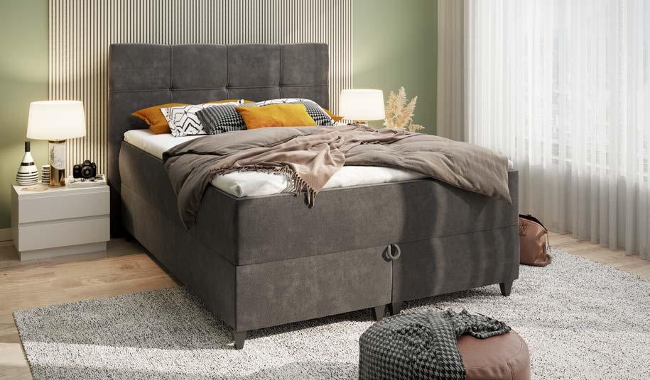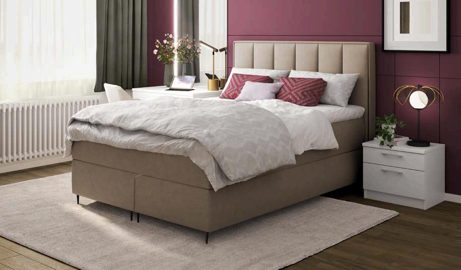 Zbog visokog tapeciranog uzglavlja s okomitim utezanjima, krevet Rita vizualnim trikom unosi dojam visine i elegancije u svaki interijer. Osim što izgleda sofisticirano, ima madrac s džepićastom jezgrom koji pruža vrhunsku udobnost te prostrani spremnik za pohranu.