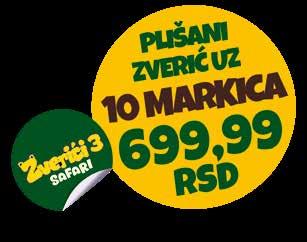 Do 10.05.2026. uz svakih potrošenih 850 RSD i jedan posebno obeleženi proizvod, dobiceš dve kesice sa sličicama. Kesica sadrži dve sličice i jednu markicu. Plišanog Zverića možeš kupiti do 24.05.2026. ili do isteka zaliha.