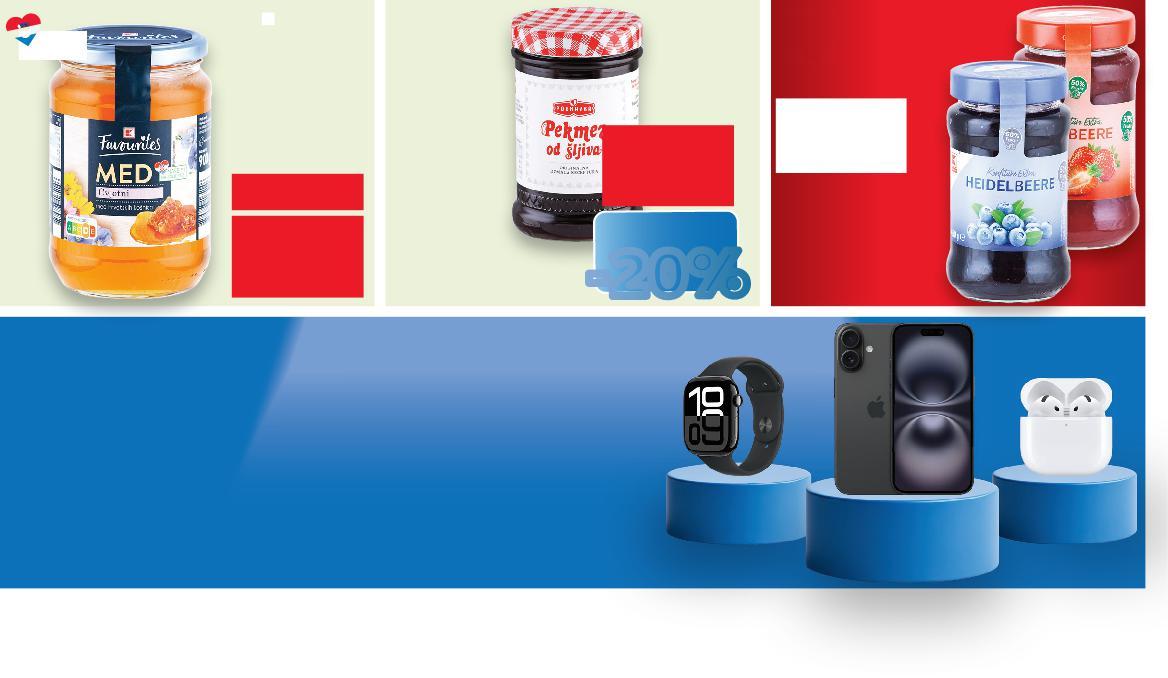 *Sve navedene cijene izražene su u eurima s PDV-om. Ne odgovaramo za tiskarske pogreške. Fotografije proizvoda ne moraju 100% odgovarati dotičnim proizvodima. Proizvode iz aktualne ponude možete kupiti samo u količinama predviđenim za kućanstvo. **Proizvodi označeni kao kratkotrajna ponuda na raspolaganju su do zadanog datuma, odnosno do prodaje zaliha. MPC=maloprodajna cijena u smislu čl. 4. st. 1. t. 11. Zakona o zaštiti potrošača (NN 19/22, 59/23)