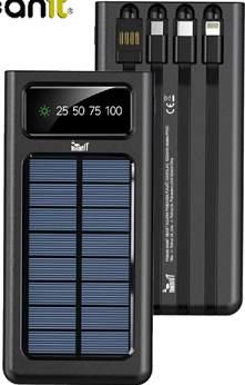 Solarni prijenosni punjač i svjetiljka P1 meanIT kapacitet 10.000 mAh, integrirani solarni panel za nadopunjavanje, ugrađena LED lampa, kabeli s konektorima za punjenje (Type C, microUSB I Lightning) 1 kom