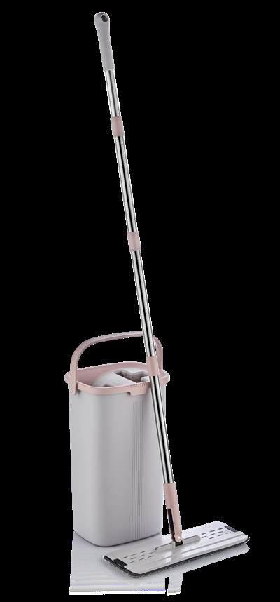 Set za pranje poda Flat Mop sadrži kantu s ocjeđivačem i plosnati brisač poda, kanta sadrži dva odjeljka / za pranje i cjeđenje brisača 1 set