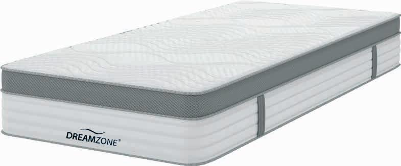 Luksuzan dvostrani madrac s multidžepičastim oprugama (515/m²) podijeljen na 7 zona udobnosti. Punjen polieterskom pjenom. Periva navlaka s COOLMAX® vlaknima koja reguliraju temperaturu i vlagu. Gusto prošivena memorijskom pjenom koja ublažava pritisak na tijelo. Visina: 28