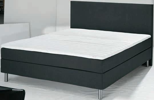 Kvalitetan boxspring krevet. 1 dvostrani madrac s oprugama s džepičastim oprugama (250/m²), podijeljen na 7 zona udobnosti i punjen polieterskom pjenom. 1 nadmadrac visine 4 cm s jezgrom od polieterske pjene. Baza se sastoji od 1 okvira. S nogama. Bez uzglavlja. 140x200 cm* 1199 €