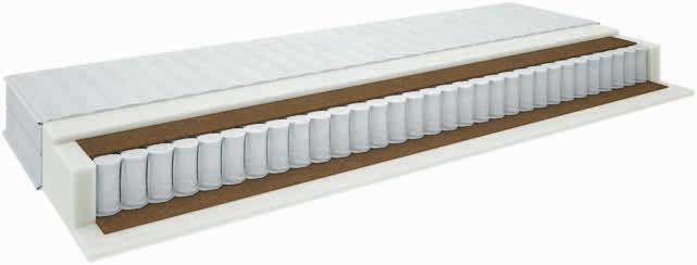 Kvalitetan dvostrani madrac s džepičastim oprugama (256/m²), podijeljen na 5 zona udobnosti, pružajući tako optimalnu potporu. Sa slojem prozračnih kokosovih vlakana i polieterske pjene. Navlaka prošivena pamukom i poliesterskim vlaknima. Visina: 19