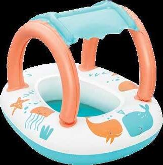 Sa sjenilom, dimenzije: 84×67cm ovaj šareni čamac s motivima morskih životinja osmišljen je za djecu stariju od 3 godine i nosivosti do 30kg, izrađen je od izdržljivog i sigurnog PVC materijala