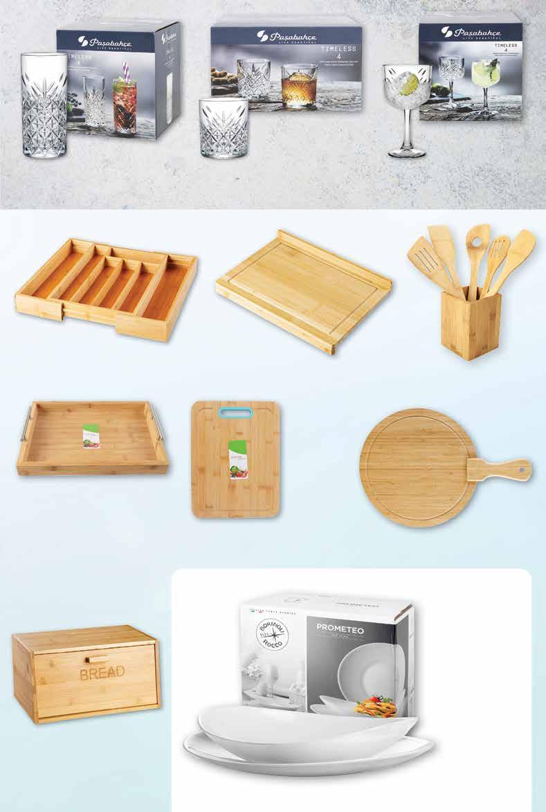 Set tanjura • bijeli, opalno staklo • sadrži 6 dubokih, 6 plitkih i 6 desertnih tanjura Daska za posluživanje •