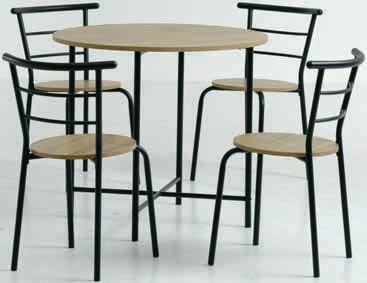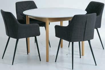 Sto: masivno drvo i medijapan. Ø110xV75 cm. Sa 2 dodatna krila. Veličina produženog stola Š110xD200xV75 cm. Stolice: tkanina i čelik. Sto* 46999,- 35000,- Stolica 9999,- 8000,-