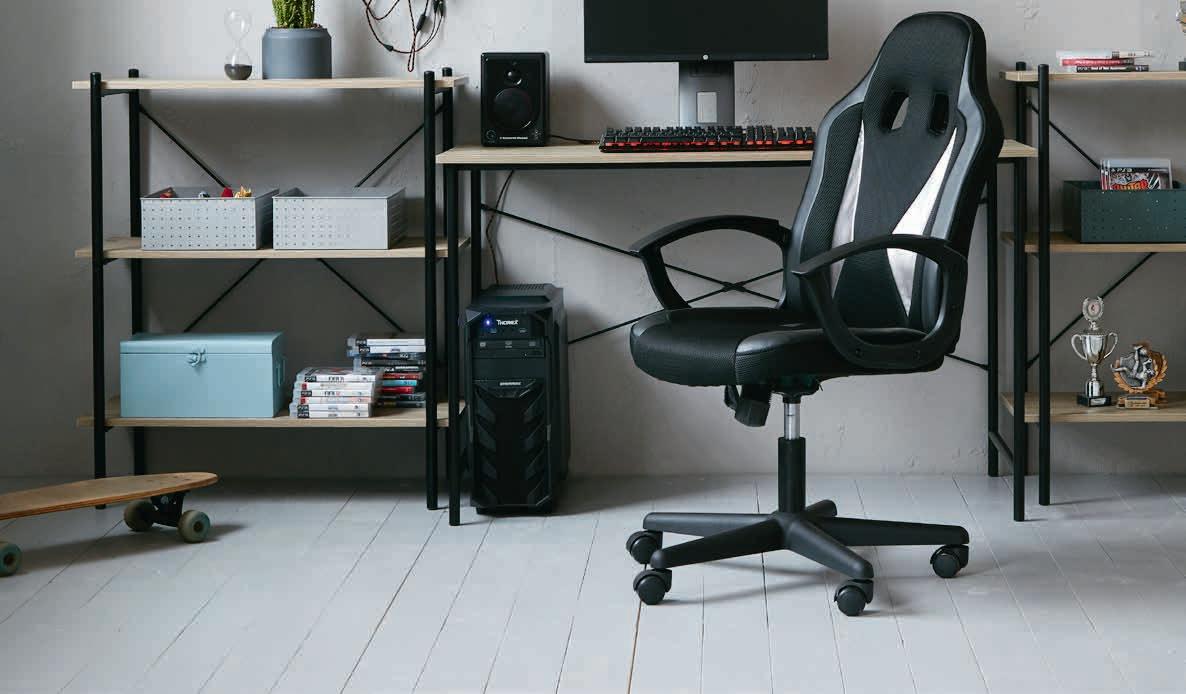 TRAJNO NISKA CENA ASPERUP RADNA STOLICA Tkanina i mreža. Baza od čelika. Sa podrškom za lumbalni deo leđa, naslonima za ruke koji se podižu, podesivom visinom i kliznim nagibnim mehanizmom. Š59xV95-107xDub61