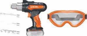 Nakon umetanja baterija u bušilicu i pritiskanja dugmeta, bušilica se okreće i takođe proizvodi realističan zvuk. Set je opremljen sa tri zamenljiva nastavka, tako da može da stane bilo koja vrsta šrafa. Svu zabavu prati svetlosni efekat.