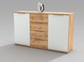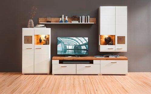 Regal za dnevni boravak Fun Plus II, boja: siva/dekor hrasta, dim. 325x205x47 cm, LED rasveta uključena u cenu. Komoda, MDF, boje: bela/hrast, dim. 170x94x42 cm, 2 vrata, 3 fioke 62.999,- 49.999,- RSD (27370315/01,05)
