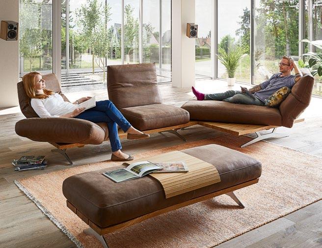 Ugaona garnitura Nurano Exklusiv, boja: braon, talasaste opruge, jezgro od PE pene, nasloni za ruke i glavu višestruko podesivi, uznožje: puno drvo, hrast, dostupno u različitim bojama, dostupno i u suprotnom uglu. Tabure, 150 x 60 cm. (11710092/03,21)