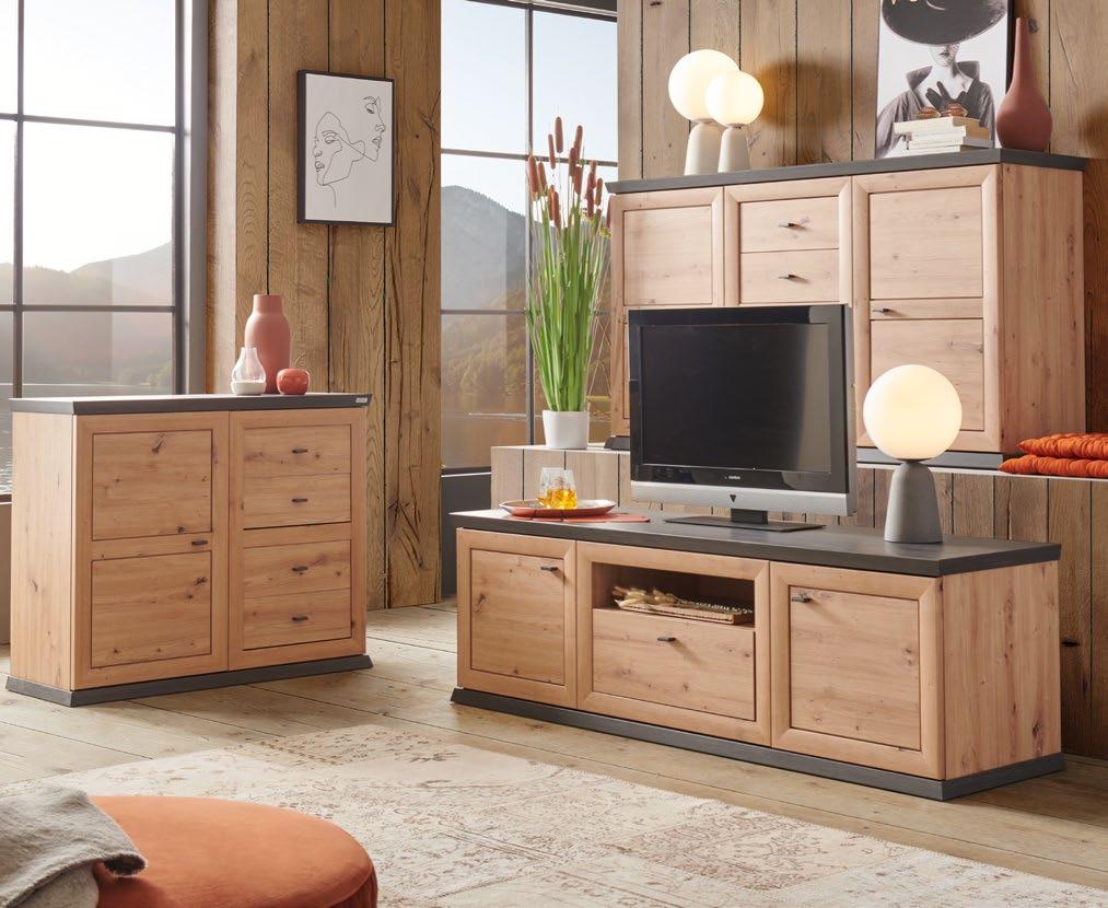 Regal za dnevni boravak Camron, boja: dekor bora/siva, 329,4x209,2x50 cm. Komoda , 2 vrata, 2 fioke, 160x88,3x42,5 cm 40.999,- 31.499,- RSD. Klub sto, 2 fioke, 65x65x46 cm 14.999,- 11.499,RSD; 2 fioke, 110x80x45 cm 21.999,- 16.899,- RSD (00030001/01,03,47,02)