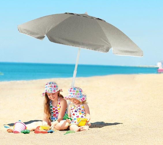 Od aluminija i poliestera, s unutarnjim anti-UV premazom i 8 rebara od fiberglasa, mjere: Ø200 x 210h cm, boje: ecru, svijetlo plava.