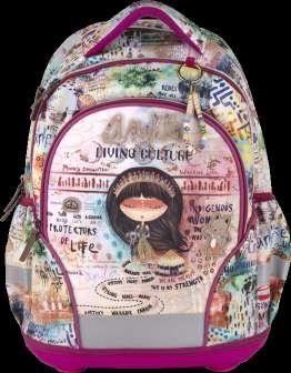 Dimenzija: 32x43x18 cm; ergonomski oblikovan leđni dio; anatomski oblikovane široke naramenice; 3 pretinca, više džepova