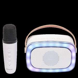 Bežični mikrofon kombinira snagu visokokvalitetnog mikrofona s ugrađenim zvučnikom. Omogućuje vam da bez napora reproducirate glazbu dok pjevate. Baterija: 1200 mAh, Li-polimer, Reprodukcija glazbe: 3 h, Vrijeme punjenja: 3 h