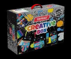 Set sadrži: bojice, uljne pastele, vodene bojice, flomastere, masu za modeliranje, tempere, plastelin, crni tuš, posudu za vodu, kistove, gumicu, šiljilo, grafitne olovke, paletu za slikanje, pvc podlogu za stol, dječje škare, ljepilo u sticku i dvostrani permanentni marker