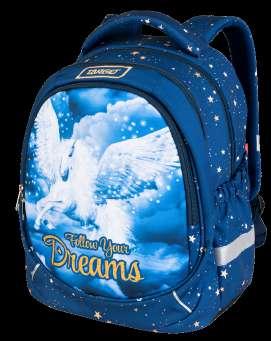 Set se sastoji od: Anatomske školske torbe dimenzije 33,7 x 31 x 22 cm kapacitet 15L težina 900 g pernica puna 1 zip vrećica za tjelesni novčanik