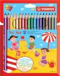 set sadrži: 6 mini bojica, 12 markera, 12 bojica, 12 vodenih boja s pločicom za četke i mješavine, gumica, 2 olovke, šiljilo, ravnalo, škare