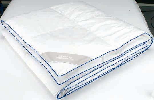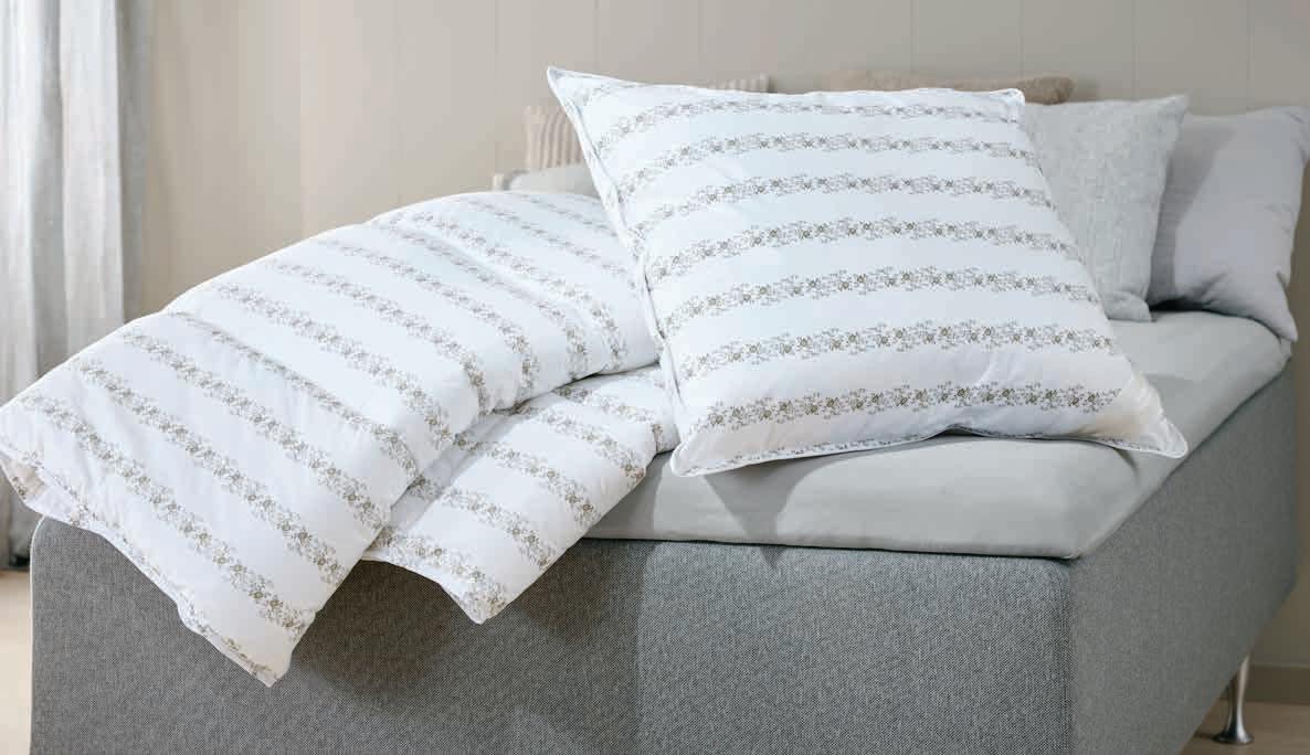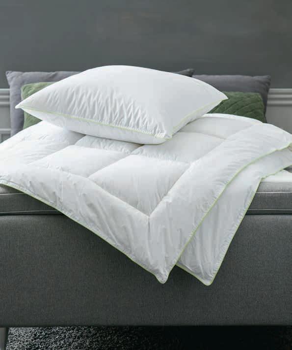 Sa punjenjem od 60% belog pačjeg paperja/40% pačjeg perja (900 g). Navlaka od 100% pamučnog batista. Periv na 60°C. 135x200 cm 14999,-