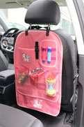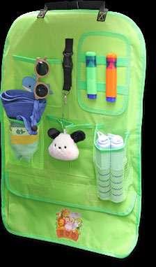 Organizator za autosjedalo, s gumbima za kopčanje, gumicama i džepovima, veličina 65 x 40 cm, boje: zelena, roza i svijetlo plava.