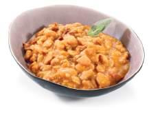 2. Stavite cijele krumpire s korom u lonac s hladnom, posoljenom vodom. Zakuhajte, zatim smanjite vatru i kuhajte dok ne omekšaju (otprilike sat vremena, ovisno o veličini). Kad su krumpiri skoro kuhani, zagrijte mlijeko u manjoj posudi – bez vrenja. Ogulite i ohladite krumpire, zgnječite ih i pretvorite u pire pomoću gnječilice za krumpir. Dodajte mlijeko i začinite po želji. Držite pire na toplom mjestu.