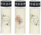Lampion nadgrobni Paxlui Pia bijeli s metaliziranim dezenima i epitafima, plamen traje do 7 dana