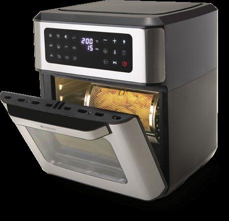 S digitalnom kontrolnom pločom osjetljivom na dodir i LED zaslonom, temperatura do 200°c, digitalni timer do 60 min., 11 programa + funkcija pečenja, pribor: rotirajuća košara, pečenje, posuda za kapanje, 3 rešetke, posuda za skupljanje ulja, snaga 1700 W.