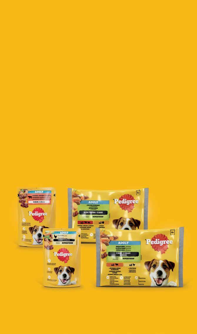 PEDIGREE® vlažna hrana u kesicama predstavlja 100% nutritivno balansiran obrok odličnog ukusa.