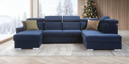 2.369€ Kutna garnitura LANEO XL, 195x316x175cm, ležaj 125x255cm, 2x prostrani spremnik, 6x pomični naslon za glavu, vrijedi za materijal Texas 91 (antracit, isporuka odmah) i Misterio 78 (plava, za narudžbu).