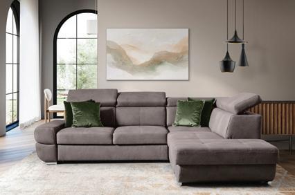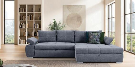 1.590 € Kutna garnitura BREVA, 292x183cm, ležaj 160x230cm, spremnik, 2x podesivi rukonasloni, 3x jastuk za leđa, lijeva ili desna strana, cijena vrijedi za materijal II kategorije Aston 13 (siva).