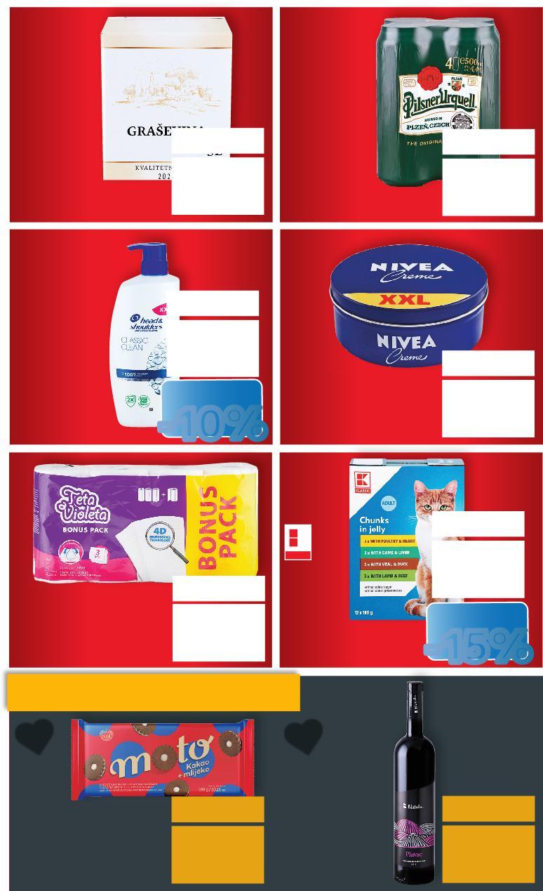 *Sve navedene cijene izražene su u eurima s PDV-om Ne odgovaramo za tiskarske pogreške Fotografije proizvoda ne moraju 100% odgovarati dotičnim proizvodima Proizvode iz aktualne ponude možete kupiti samo u količinama predviđenim za kućanstvo. **Pojedini proizvodi označeni kao kratkotrajna ponuda dostupni su količinski i vremenski strogo ograničeno, te je za istima u pravilu potražnja povećana. Stoga upućujemo naše cijenjene kupce da je sve detalje oko istih moguće dobiti na našem info-pultu izravno, ili pak unaprijed putem Upravljanja odnosa s kupcima, na broj 0800/223 223 ili putem e.maila kontakt@kaufland.hr MPC=maloprodajna cijena u smislu čl. 4. st. 1. t. 11. Zakona o zaštiti potrošača (NN 19/22, 59/23) 0800 / 223 223 (besplatni telefon Upravljanja odnosa s kupcima) Radno vrijeme Upravljanja odnosa s kupcima: pon - pet, od 8:00 do 20:00 / sub od 8:00 do 17:00