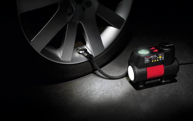 • P renosiva baterija sa 4 funkcije: –Uključuje kompresor sa integrisanim pneumatskim crevom i digitalnim manometrom –K ablovi za startovanje auta sa funkcijom trenutnog pokretanja –2 USB porta za punjenje: USB-A sa 1 A, USB-C sa 2 A izlazne struje –Funkcija LED džepne lampe