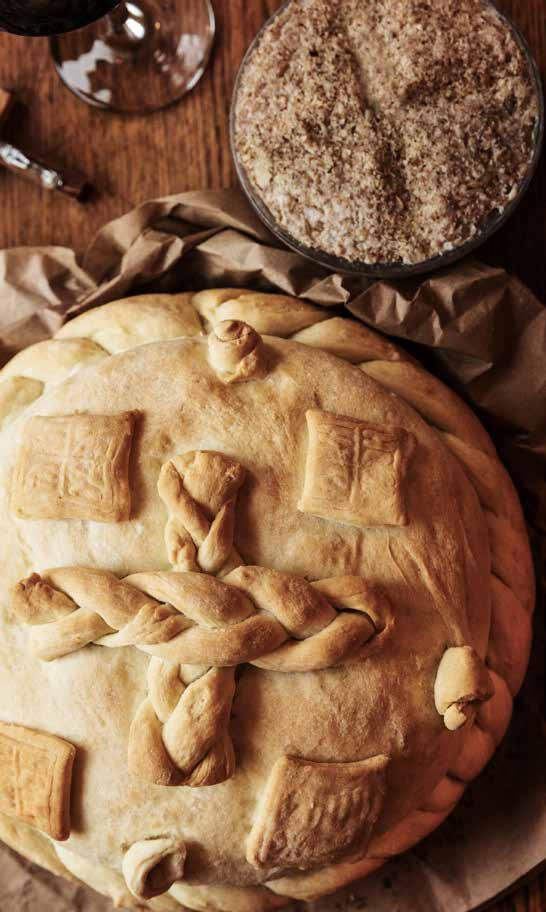 razni kolači. U trenutku kada se okupljaju najbliži, vino se pije kao znak radosti i obnove života. Tradicionalno, uz brojnu religioznu simboliku, uz vino se razmenjuju najlepše želje i blagoslovi.
