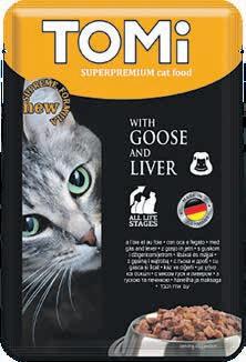 Hrana za mačke Tomi 100g guska/jetra, perad/kunić, teletina/puretina, govedina/mrkva (1kg=5,50€) 0, 55 €