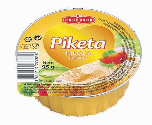 Pašteta Piketa 95g Podravka pileća, čajna, jetrena ili pileća pikant (1kg=8,32€)