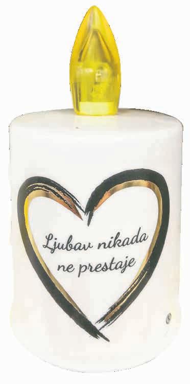 Smirna tinjalica visina 11,5cm, metalik, s različitim dezenima i utješnim epitafima, svijetli do 70 sati