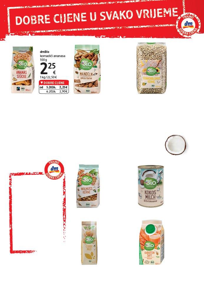 Uživajte u širokoj lepezi proizvoda i raznovrsnom izboru u dm-u te iskoristite priliku kupovati pametno svaki dan, jer kod nas trajno dobre cijene zaista traju! Bez obzira radi li se o asortimanu za domaćinstvo, njegu, ljepotu, osviještenu prehranu, bebe i djecu, kućne ljubimce... uz vas smo u svim segmentima vašeg života!