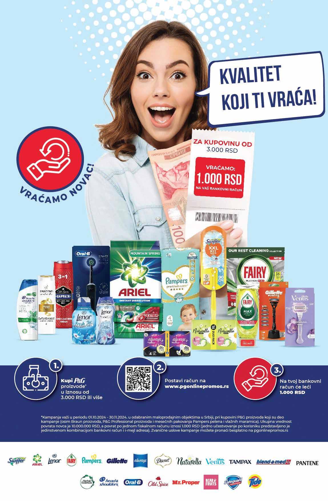 Akcijska ponuda važi od 17.10. do 23.10.2024. osim za artikle pored kojih je naveden drugačiji period trajanja akcije ili do isteka zaliha. Nastojimo da obezbedimo dovoljne količine proizvoda koji su na akciji. Može da se desi da zalihe određenih proizvoda nestanu pre kraja trajanja akcije. Akcijska ponuda važi u objektima u čijem asortimanu se nalaze prikazani artikli. Spisak objekata u kojima važi akcijska ponuda nalazi se na web-stranici akcijskog kataloga – Maxi nedeljna akcija. Moguća su odstupanja u raspoloživosti artikala na akciji prikazanih na lifletu, u odnosu na one koji su raspoloživi u konkretnom maloprodajnom objektu, što je uslovljeno formatom objekta, kao i prostorno-tehničkim mogućnostima konkretnog maloprodajnog objekta. Prikazane cene u lifletu su izražene u dinarima sa PDV-om i odnose se na jedinične proizvode. Ne odgovaramo za moguće štamparske greške. Fotografije ne moraju u potpunosti odgovarati stvarnom izgledu proizvoda. Sve svoje sugestije možete nam preneti putem e-mail adrese: potrosaci@delhaize.rs ili besplatnim pozivom MAXI call centra 0800 3537 030. Napominjemo da u pojedinim Maxi objektima može doći do odstupanja u prikazanim redovnim cenama. Prikazane redovne cene važe u najvećem broju Maxi objekata.