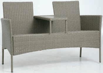Stol: Čelik i umjetno drvo. Š47xD85xV39 cm. Dvosjed i stolice: Čelik i tekstilen. Dostupno i u bež boji.