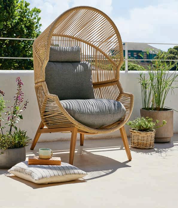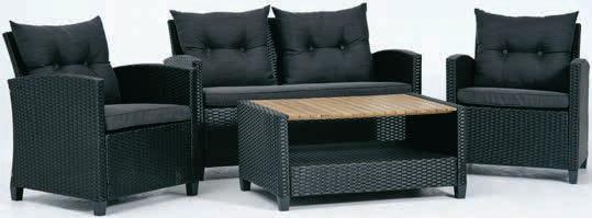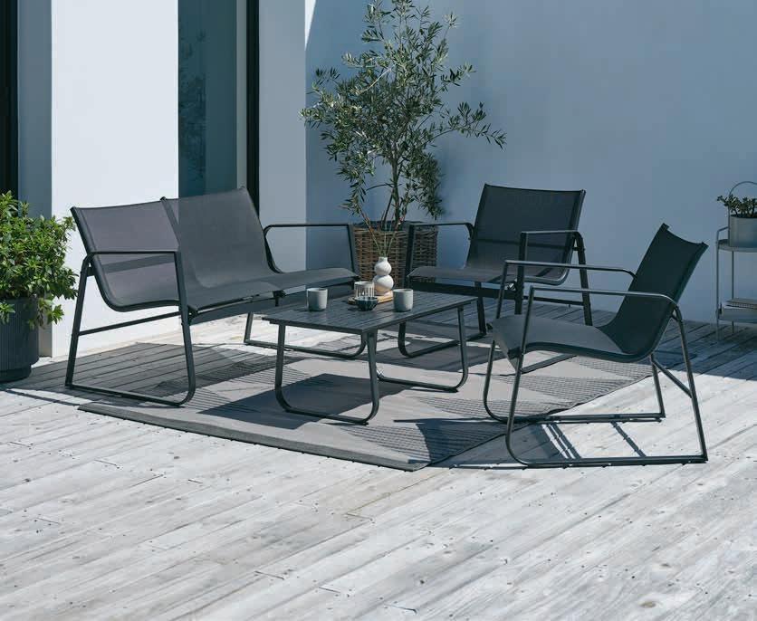 Stol: Čelik, nauljeno FSC® tvrdo drvo i petan. Š56xD93xV43 cm. Dvosjed i stolice: Čelik i petan. S luksuznim jastucima s dugotrajnom, grubo tkanom navlakom.* 549 € 400 €
