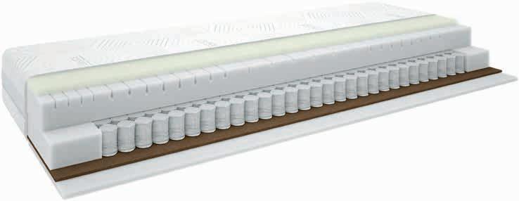 Kvalitetan dvostrani madrac s džepičastim oprugama (256/m²), podijeljen na 5 zona udobnosti, pružajući tako optimalnu potporu. Sa slojem prozračnih kokosovih vlakana i polieterske pjene. Navlaka prošivena pamukom i poliesterskim vlaknima. Visina: 19 cm. 80x200 cm