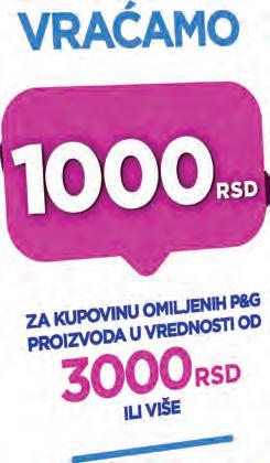 Kampanja va i u periodu 01.05.2025 - 30.06.2025 u odabranim maloprodajnim objektima u Srbiji, pri kupovini P&G proizvoda koji su deo kampanje (za detaljnu listu proizvoda koji u estvuju i koji ne u estvuju u kampanji, molimo vas da pogledate zvani ne uslove i odredbe na pgonlinepromos.rs). Ukupna vrednost povrata novca je 10.000.000 RSD, a povrat po jednom skalnom ra unu iznosi 1.000 RSD (jedno u estvovanje po korisniku predstavljeno je jedinstvenom kombinacijom bankovnog ra una i e-mail adresa). Zvani ne uslove kampanje mo ete prona i besplatno na pgonlinepromos.rs.