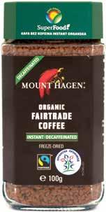 Organska instant kafa bez kofeina Mount proizvedena je metodama organske proizvodnje od biljaka koje su gajene na velikim visinama u svom prirodnom okruženju, čime se doprinosi očuvanju prirodnih ekosistema. Zelena zrna arabike I klase se pažljivo beru i suše na suncu. Proizvod ne sadrži laktozu i gluten.