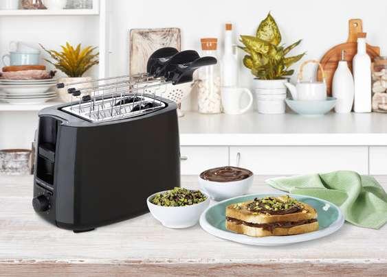 2 hvataljke od nehrđajućeg čelika, 7 stupnjeva pečenja, automatsko izbacivanje hvataljki. S pladnjem za mrvice i protukliznim gumenim nožicama, boje: bijela, crna.