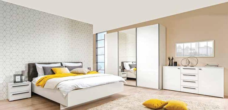 1.345,28 € Spavaća soba TONY, krevet 160x200cm + 2x noćni ormarić 44,5x33,5x42,5cm + dvokrilni garderobni omar 215x65,5x223cm, MDF, visoki sjaj bijela/ogledalo